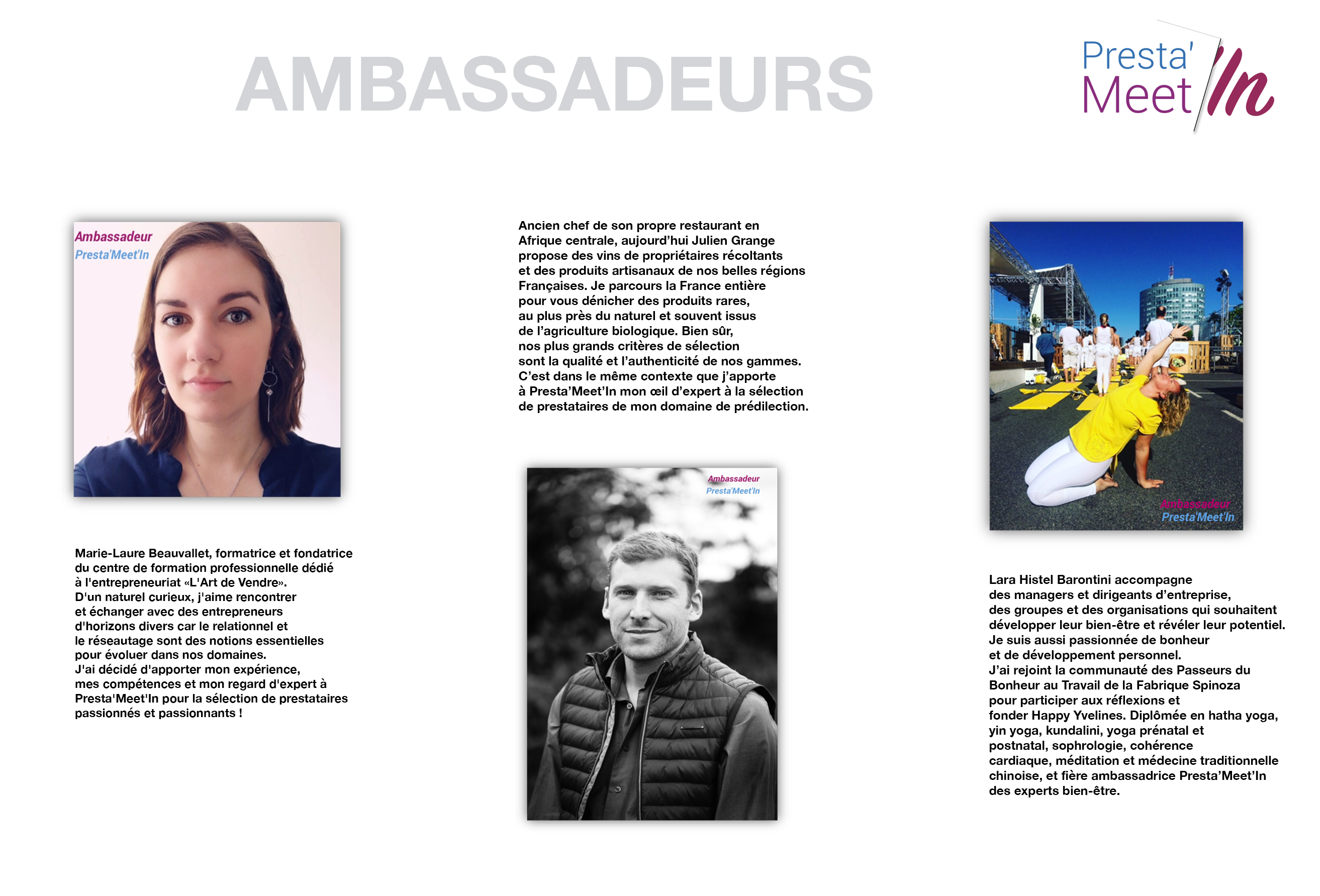- une démonstration live de Presta’Meet’In, l’outil indispensable pour trouver rapidement les meilleurs Pros, sur toute la France, issus de domaines variés et organisez rapidement tous vos événements (salons, séminaires, fêtes…)